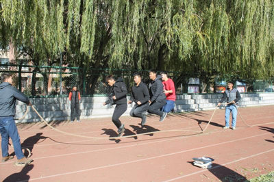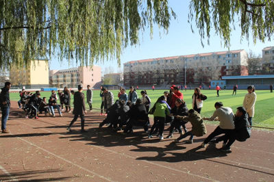 活動包括踢毽子、跳繩、拔河、搭肩單腳行進、背對背夾球、50米賽跑等項目。同學們一改往日“宅男宅女”形象,場面十分熱鬧。拔河比賽是本次活動中的亮點,男生女生齊上陣,比分緊緊僵持,同學們直呼過癮?;顒咏Y束后,同學們紛紛表示,從腦力活動轉換到身體活動,從蹲寢室到走出來的轉變,使頭腦更加清醒,精神狀態更加良好。