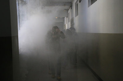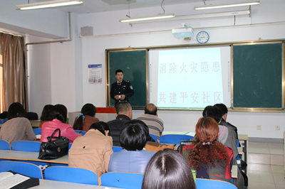 羅教官首先結合近年來發生在學生宿舍、娛樂場所、居民小區等地點的典型火災案例,以視頻、圖片及文字的形式直觀闡述了普及消防安全知識、提升防火意識的重要性,并從檢查消除火災隱患、撲救初級火災、疏散逃生、宣傳教育培訓四個方面詳細介紹了引起火災的主要原因、滅火器的使用方法、疏散逃生自救方法等一系列消防安全知識。隨后,在學校外教樓一樓進行了逃生演練。在教官的疏散指揮下,同學們彎著腰,用濕毛巾捂住口鼻,從各個消防通道迅速有序地撤離火災現場,到達指定的安全地帶集中。