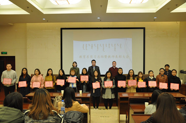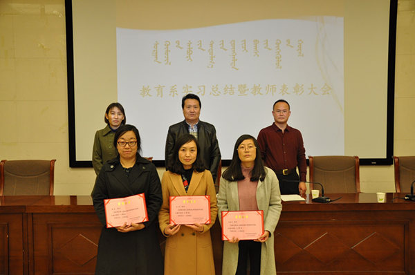 其次,對教育系第三屆青年教師課堂教學技能大賽中獲獎的梅花、王慧東、許曉芳、烏日罕等教師進行了表彰。王書記表示,希望全系教師勤奮學習,努力工作,深化課堂教學改革,從學生實際出發,以學生為中心,加強課堂教學的針對性和實效性,切實提高課堂教學效率。