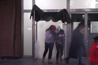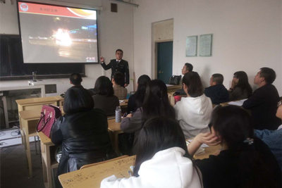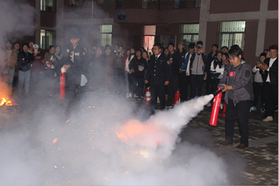 講座中,郭教官結合工作實際,采用了大量案例,以圖文并茂的形式,圍繞火災類型、火災防范及滅火、自救等知識和技能,詳細講解了如何發現消防隱患、火災初期如何滅火、如何組織逃生以及如何正確使用消防設施等,并親自演示了滅火器、防煙面罩、逃生錘等消防工具的使用要點。一個個觸目驚心的火災事例,充分展示了火災的無情與危害,使在場的師生深刻認識到“防患于未然”的重要性。隨后,組織開展了正確使用消防設施以及逃生演練活動。
