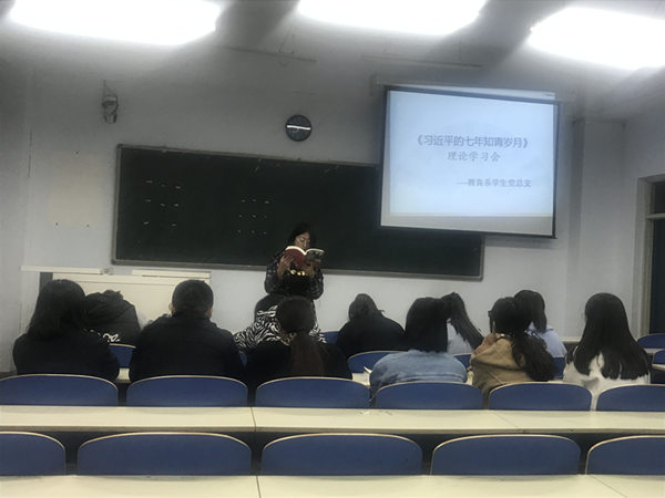 10月26日晚,教育系組織學生黨員和預備黨員在都林樓502教室開展了《習近平的七年知青歲月》專題學習。本次專題學習由教育系團總支安梅琴老師引導,主要內容是“為群眾做實事是習近平始終不渝的信念”。