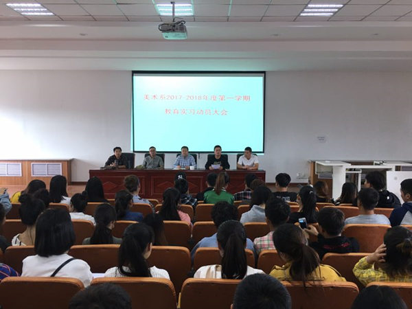 為確保美術(shù)系2014級美術(shù)學(xué)專業(yè)學(xué)生教育實習(xí)工作的順利開展,9月26日下午,美術(shù)系在美術(shù)樓四樓階梯教室召開了教育實習(xí)動員大會。會議由美術(shù)系黨總支副書記包旭東主持,系副主任高特木樂、團總支書記白永泉,班主任、指導(dǎo)教師以及全體2014級美術(shù)學(xué)專業(yè)80多名學(xué)生參加了本次會議。