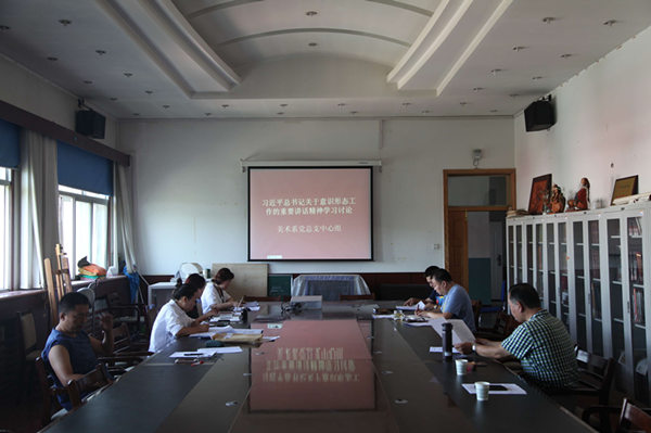 會前,美術系黨總支要求全體中心組成員根據所推薦的學習篇目,提前自學,分別按照3個主題撰寫發言材料,做好準備工作。
