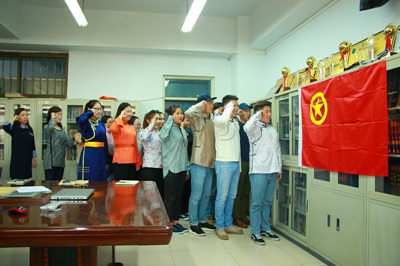 會(huì)上,團(tuán)總支齊丹老師簡要介紹了我系共青團(tuán)“一學(xué)一做”教育實(shí)踐開展情況,團(tuán)支部書記分別介紹了各自支部的主題團(tuán)日活動(dòng)、征文活動(dòng)等情況,大家進(jìn)行了活動(dòng)經(jīng)驗(yàn)交流和心得分享。最后,全體與會(huì)學(xué)生代表面向團(tuán)旗重溫了的入團(tuán)誓詞。