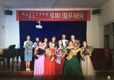 音樂(lè)系于2017年5月16日—7月6日,分別在學(xué)校圖書(shū)館二樓報(bào)告廳、演播廳和逸夫音樂(lè)樓舞蹈室等場(chǎng)所,共舉辦了17場(chǎng)技能教學(xué)成果展演活動(dòng)。其中,聲樂(lè)教研室6場(chǎng)(畢業(yè)生匯報(bào)音樂(lè)會(huì)4場(chǎng)、實(shí)踐教學(xué)匯報(bào)演出2場(chǎng)),鍵盤(pán)教研室3場(chǎng)(畢業(yè)生匯報(bào)音樂(lè)會(huì)1場(chǎng)、實(shí)踐教學(xué)匯報(bào)演出2場(chǎng)),器樂(lè)教研室5場(chǎng)(畢業(yè)生匯報(bào)音樂(lè)會(huì)5場(chǎng)),理論教研室1場(chǎng)(實(shí)踐教學(xué)匯報(bào)演出1場(chǎng)),教師個(gè)人出校深造回校匯報(bào)音樂(lè)會(huì)2場(chǎng)(莫日根圖雅巴楊手風(fēng)琴獨(dú)奏音樂(lè)會(huì)、韓木蘭獨(dú)唱匯報(bào)音樂(lè)會(huì))。另外,在舉辦各類音樂(lè)會(huì)之余,還為師生舉辦了一場(chǎng)晁浩健教授聲樂(lè)大師課講座。