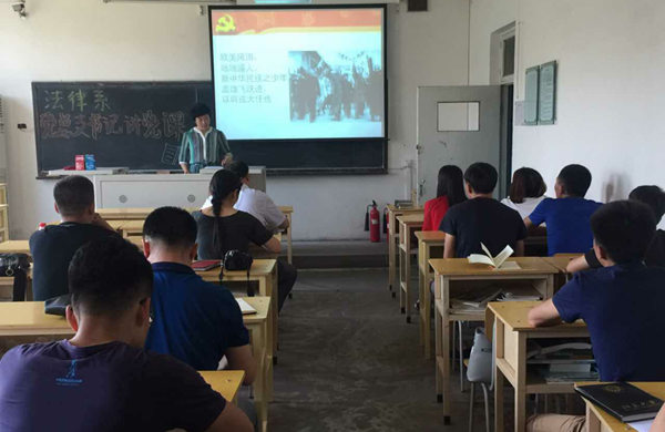 根據《法律系黨總支推進“兩學一做”學習教育常態化制度化工作計劃》的部署安排,2017年6月27日,在沃德樓411教室,法律系黨總支書記海霞為全體師生黨員和重點培養對象講授以《學習革命先輩人格風范,做“四講四有”合格黨員》為主題的專題黨課。