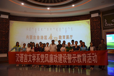 為進一步加強漢語言文學系黨風廉政建設工作穩步推進,2017年6月22日下午,漢語言文學系黨總支組織教工黨支部、學生黨支部20余人赴內蒙古自治區博物院廉政教育展廳開展黨風廉政警示教育活動。