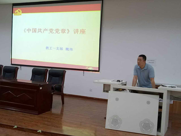 根據《美術系黨總支推進“兩學一做”學習教育常態化制度化工作計劃》的部署安排,2017年6月21日晚7時,在美術系四樓階梯教室,美術系教工第一支部書記魏偉給學生黨支部全體黨員、預備黨員、重點培養對象和入黨積極分子講了《中國共產黨章程》專題黨課。