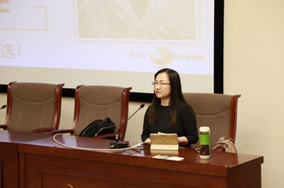 為豐富我系師生課余文化生活,多舉措推進學風建設工作,按照《傳媒系學風建設實施方案》和繼續教育專業課程的培訓要求,2017年5月11日下午,傳媒系邀請北京北大方正電子有限公司數字教育業務部的行業支持總監溫麗娜,在圖書館一樓報告廳為傳媒系150余名師生作了以“新媒體創意設計”為主題的專題講座。