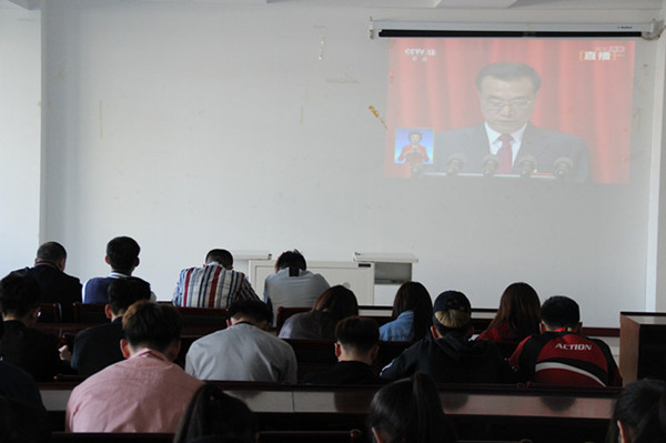 學生會干部學習李克強總理2017年政府工作報告
