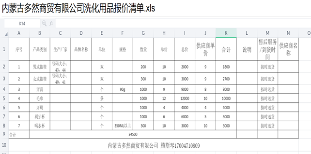 二、項目名稱:呼和浩特民族學院防疫應急物資(洗化用品)項目