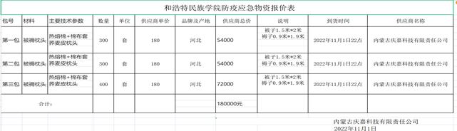 呼和浩特民族學院防疫應急物資(1000套被褥)項目