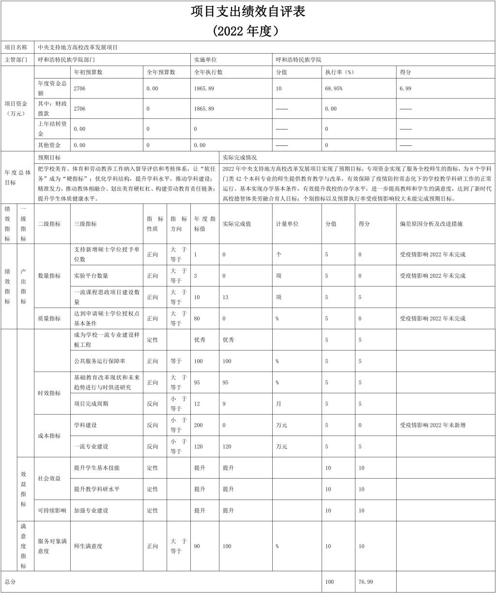 2.中央支持地方高校改革發展資金項目自評
