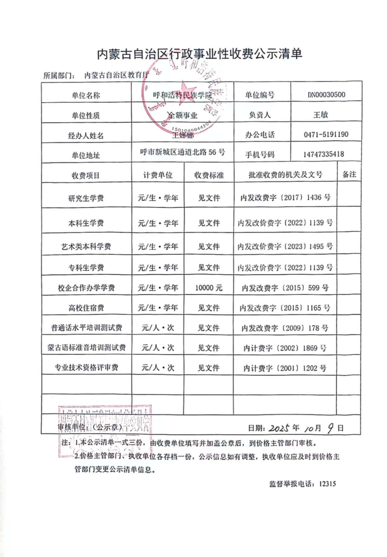 內蒙古自治區(qū)行政事業(yè)性收費公示清單