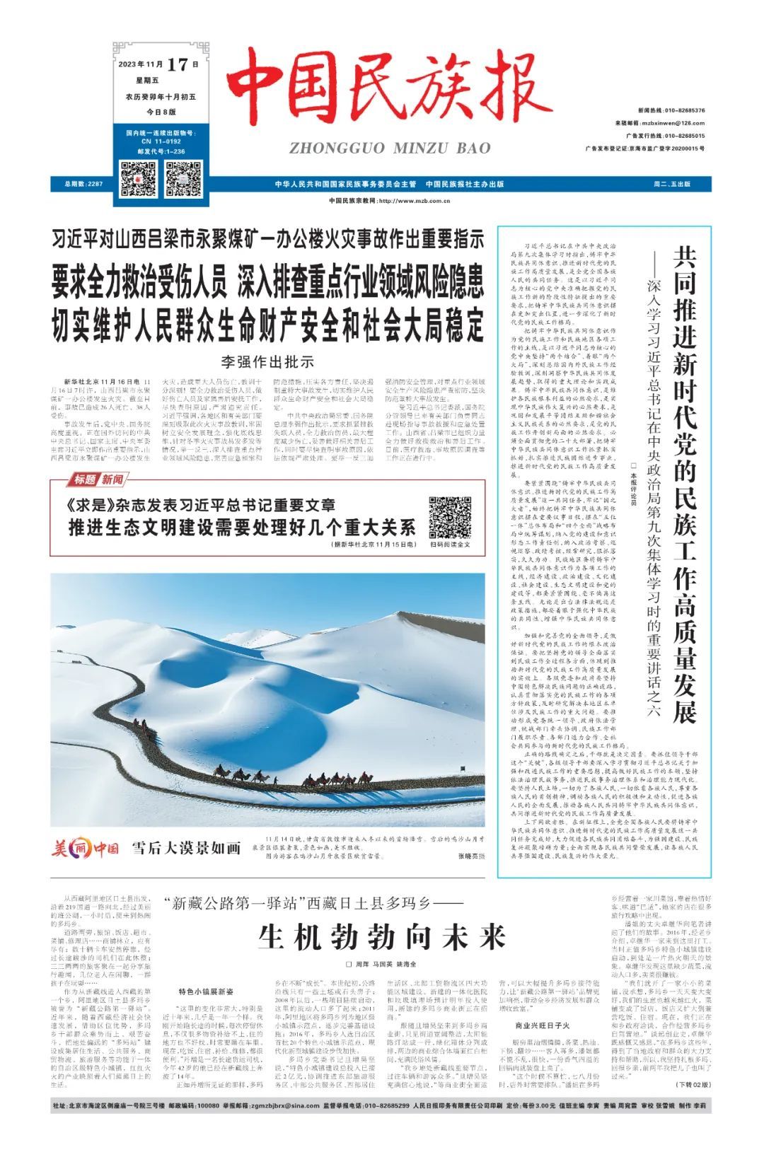 上下同欲者勝。在新征程上,全黨全國各族人民要將鑄牢中華民族共同體意識、推進新時代黨的民族工作高質量發展這一共同任務完成好,大力促進各民族共同團結奮斗,為強國建設、民族復興凝聚磅礴力量;全面實現各民族共同繁榮發展,讓各族人民共享強國建設、民族復興的偉大榮光。