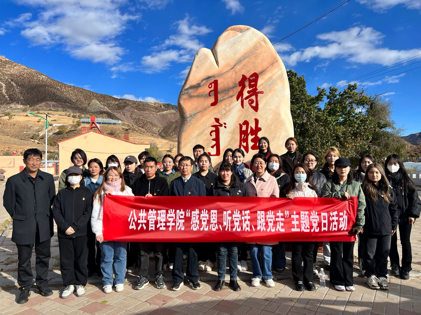 為激發基層黨建活力,10月19日公共管理學院學院教工黨支部與學生黨支部組織30余名黨員前往得勝溝革命遺址開展“感黨恩、聽黨話、跟黨走”主題黨日活動。