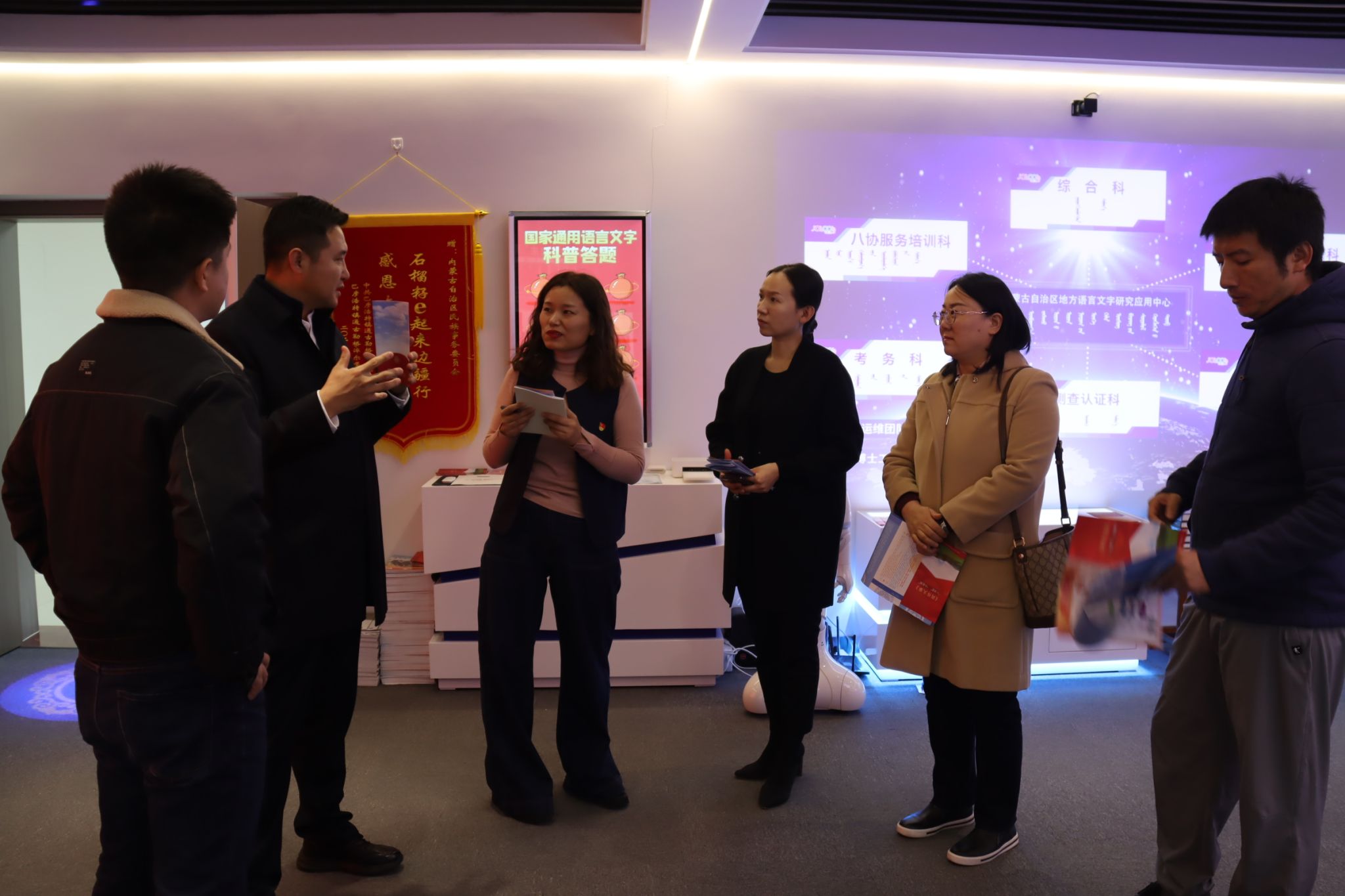 黨委宣傳部和圖書館黨支部書記帶隊參觀了“石榴籽e起來”民族工作數(shù)字化展廳,并圍繞“黨建引領(lǐng)業(yè)務(wù)融合?黨員示范”的工作模式、“石榴籽e起來”民族工作數(shù)字化展廳在民族政策法規(guī)宣傳作用、展廳用到的信息化技術(shù)及宣傳新思路等進行深入的交流。同時,雙方支部黨員圍繞如何在師生群體中做好鑄牢中華民族共同體意識工作、如何做好“道中華”品牌的宣傳推廣工作、如何做好民族理論、民族政策、民族法律法規(guī)的宣傳教育工作開展了廣泛探討。