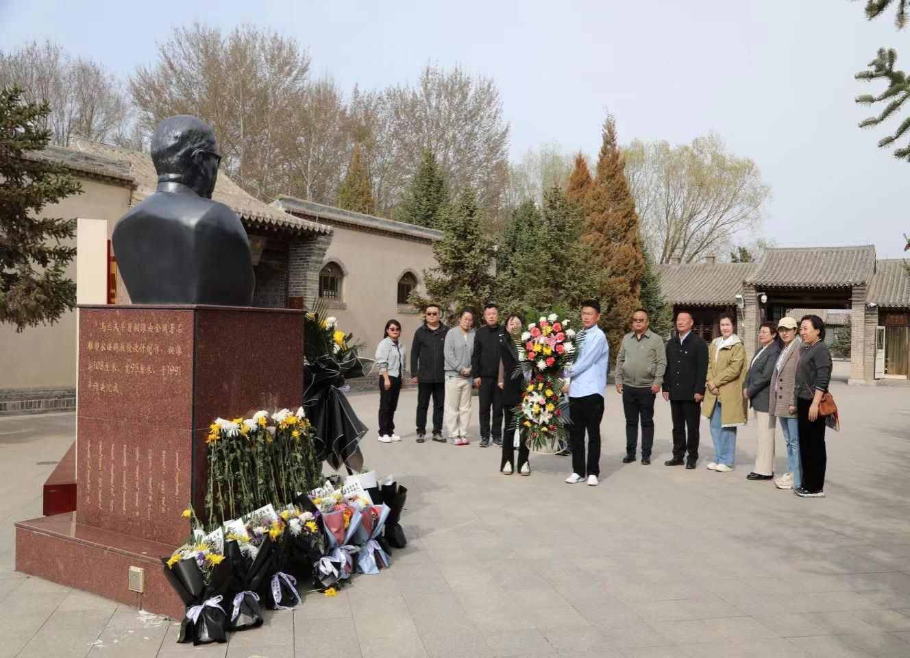 活動伊始,全體人員在莊嚴(yán)的氛圍中向烏蘭夫同志的雕像敬獻(xiàn)了花籃,表達(dá)了對這位偉大革命家的深切緬懷和崇高敬意。