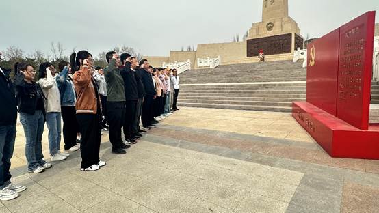 活動中,全體黨員、團員代表在革命烈士紀念碑前敬獻花籃、鞠躬致敬,緬懷革命先烈。全體黨員面向黨旗重溫入黨誓詞,莊嚴宣誓。