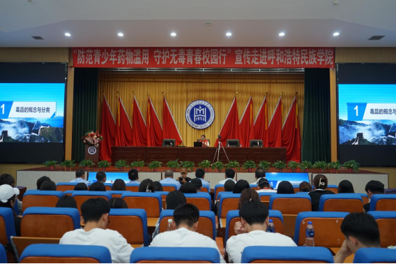 為認(rèn)真貫徹落實(shí)自治區(qū)教育廳《關(guān)于做好2024年全區(qū)教育系統(tǒng)毒品預(yù)防教育工作的通知》精神。6月11日,學(xué)校聯(lián)合市公安局禁毒辦在學(xué)術(shù)報(bào)告廳開展了“防范青年藥物濫用,守護(hù)無毒青春校園行”主題宣傳活動(dòng)。呼和浩特市禁毒委員會(huì)辦公室副主任、市公安局禁毒支隊(duì)副支隊(duì)長饒樹新,新城區(qū)公安分局禁毒大隊(duì)中隊(duì)長劉永達(dá),呼和浩特市禁毒公益協(xié)會(huì)會(huì)長王凱鵬出席,活動(dòng)由學(xué)校保衛(wèi)處副處長郭明君主持。