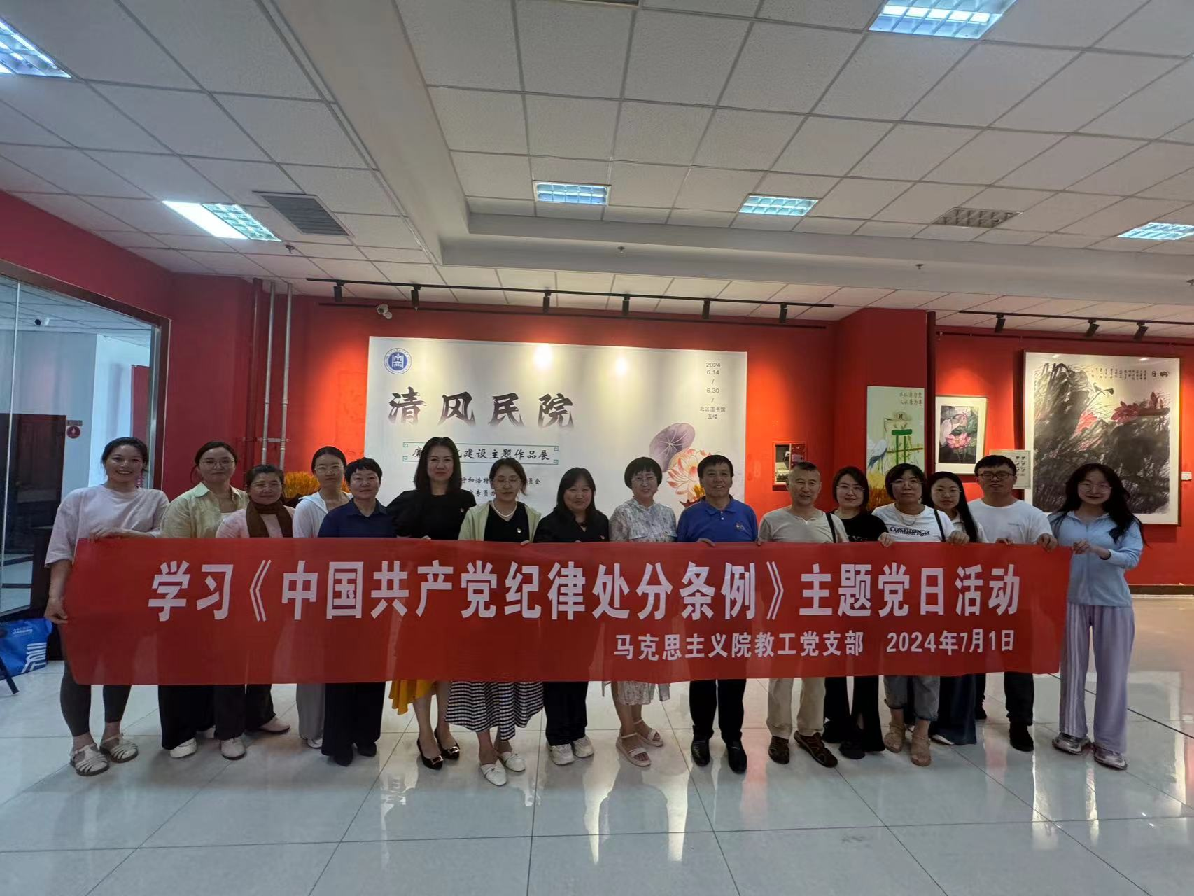 在中國共產黨成立103周年之際,為推進支部黨建工作,創新工作方式,提升黨建工作水平,7月1日馬克思主義學院教工黨支部組織開展了以學習《中國共產黨紀律處分條例》為主題的黨日活動。此次活動旨在提高黨員們的紀律意識,深化對黨的紀律建設的認識,確保全體黨員在思想上、行動上始終與黨中央保持高度一致。