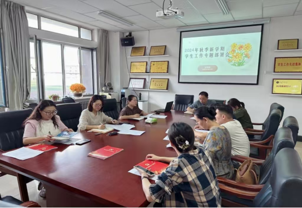 文學院在8月23日召開新學期學生工作專題部署會。會議由文學院黨總支副書記包冬梅主持,全體班主任輔導員參加會議。