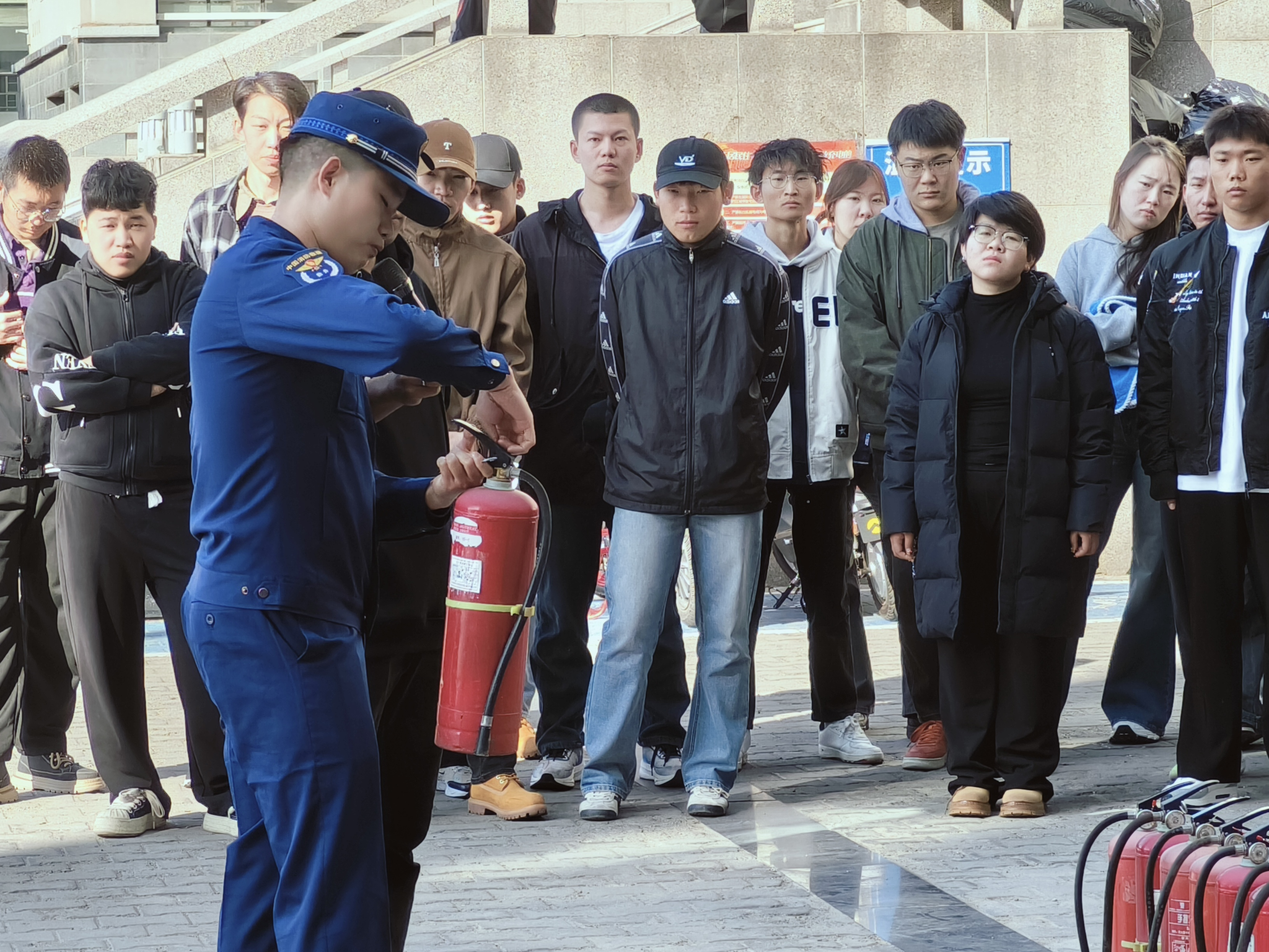 為加強全體師生的消防安全意識,預防和消除消防安全事故的發生,文學院聯合校保衛處于10月12日在12號宿舍樓和尚智樓門前組織開展消防安全演練活動,并邀請公園西路消防救援站南丁、李黃超進行消防培訓。文學院院長高娃、黨總支副書記包冬梅、班主任、輔導員以及200余名在校生參與本次演練。
