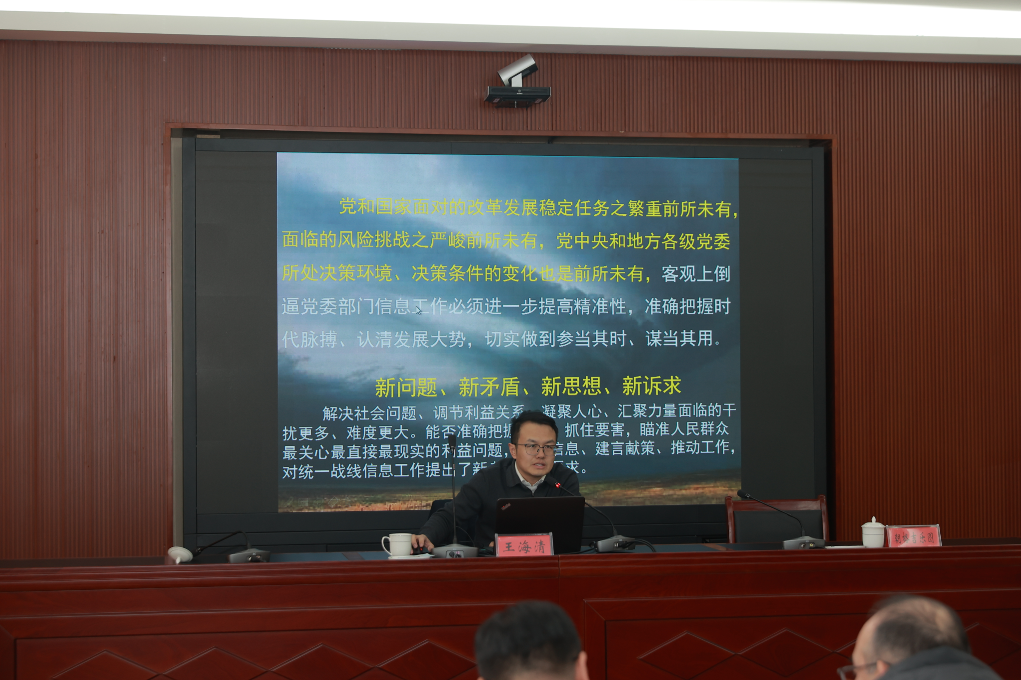 講座邀請自治區黨委統戰部綜合保障中心信息科科長王海清作題為《黨外人士建言獻策實操》。講座中,王海清闡述了統戰信息工作的重要意義,全面介紹了各級各類統戰信息刊物特點及用刊標準,并結合具體案例分析分享了信息編報技巧。