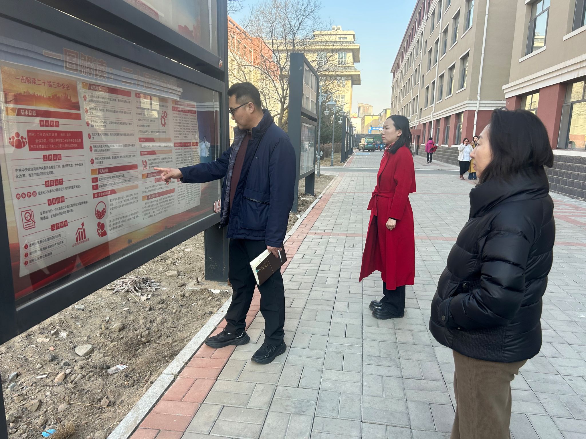 檢查組實(shí)地走訪了教學(xué)樓、圖書(shū)館、辦公樓、公寓、餐廳等樓宇場(chǎng)所和校園戶外環(huán)境,對(duì)各類文化陣地和宣傳陣地開(kāi)展集中檢查。檢查組重點(diǎn)圍繞新學(xué)期前氛圍營(yíng)造工作進(jìn)行安排部署,對(duì)各類條幅、展板、宣傳欄、文化墻、電子屏、牌匾進(jìn)行檢查,圍繞宣傳主題方向、展示內(nèi)容、設(shè)施保障等內(nèi)容進(jìn)行了全面檢查。