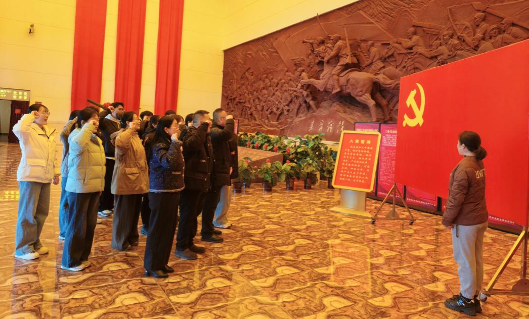 在講解員的引導下,師生們深入了解集寧戰役的重要意義,館內的珍貴文物、史料和圖片生動展現了集寧戰役的背景、經過與勝利,訴說著革命先輩們不屈不撓、英勇奮斗的感人故事。參觀結束后,全體師生黨員重溫入黨誓詞,面向黨旗莊嚴宣誓,以鏗鏘有力的誓言表達對黨的忠誠和為黨的事業奮斗終身的決心。