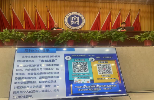 為進一步增強師生防范電信網(wǎng)絡詐騙意識,提升安全防范能力,4月15日,學院在學術報告廳舉辦了"揭秘電信詐騙套路,筑牢高校安全防線"安全教育專題講座。本次講座邀請呼市公安局反詐中心民警趙書銳擔任主講,音樂與舞蹈學院黨總支副書記白銀亮主持。