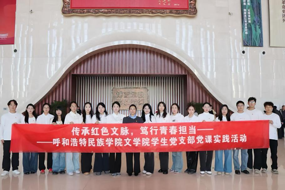 為全面貫徹黨的二十屆四中全會精神,堅持以鑄牢中華民族共同體意識工作主線,11月14日,文學院學生黨支部以“傳承紅色文脈 篤行青春擔當”為主題開展第34期黨課實踐活動。在學生黨支部書記劉曉老師帶領下,30余名學生黨員、入黨積極分子走進內蒙古博物院,沉浸式接受紅色教育與文化的熏陶。