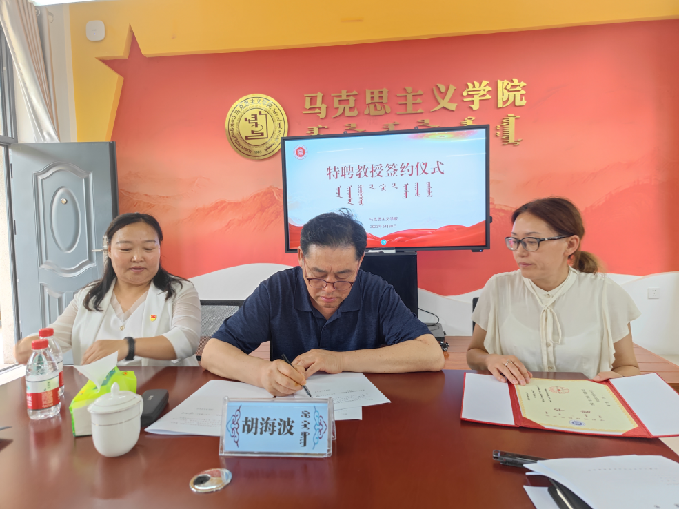 簽約儀式上,學(xué)院黨總支書記吳美榮代表學(xué)院與胡海波教授簽訂特聘教授聘任協(xié)議,并頒發(fā)特聘教授聘書。胡海波教授表示將認(rèn)真履行特聘教授職責(zé),積極發(fā)揮自身優(yōu)勢(shì)與資源,推動(dòng)馬克思主義學(xué)院在教學(xué)、科研、師資建設(shè)等方面實(shí)現(xiàn)內(nèi)涵式發(fā)展。