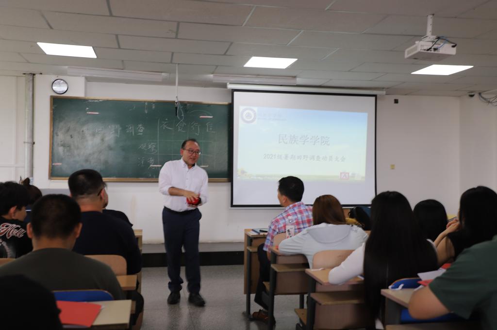 7月8日下午16時,民族學學院召開2021級暑期田野調查動員大會。學院領導班子、指導教師、班主任、輔導員及2021級民族學專業全體學生參加活動?;顒佑稍洪L青斯琴主持。