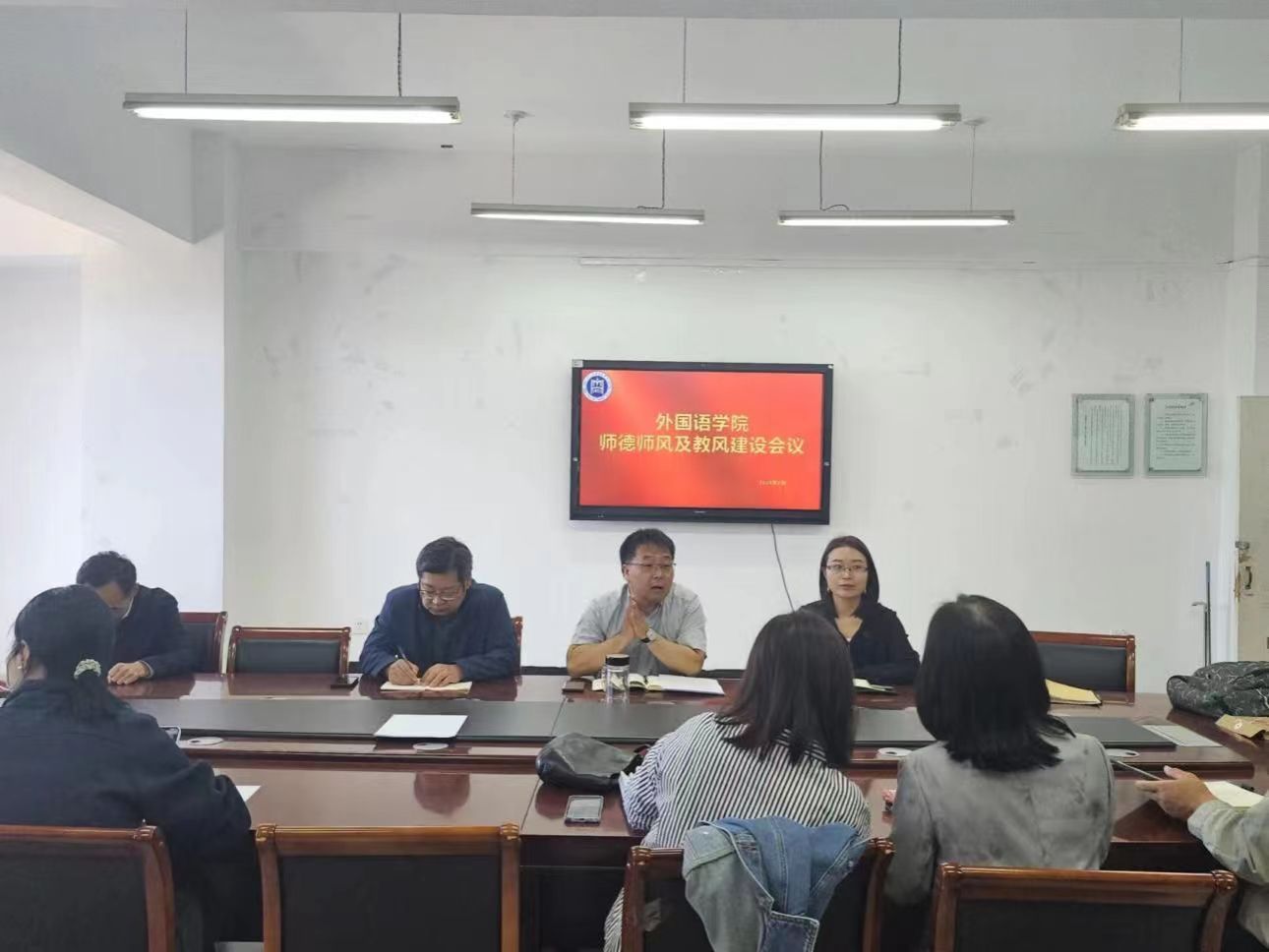 5月11日,外國語學(xué)院于都林樓611室召開師德師風(fēng)及教風(fēng)建設(shè)會(huì)議,會(huì)議由外國語學(xué)院副院長秦紅喜主持,外國語學(xué)院黨總支書記朱俊杰和全體教職工參加了此次會(huì)議。