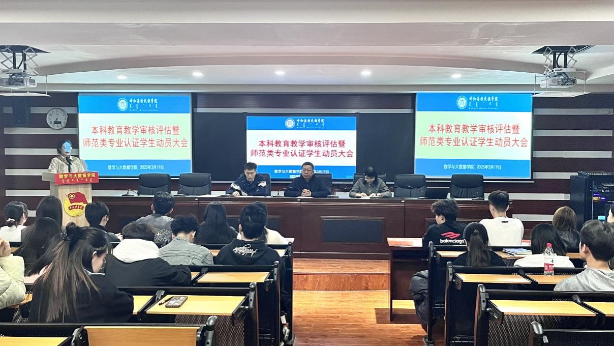 3月19日,學院在尚智樓413報告廳召開本科教育教學審核評估暨師范類專業(yè)認證學生動員大會。學院黨總支書記白秀、學生工作辦公室主任劉愛春、團總支書記額日合木,各班級班團干部、學生會全體成員等學生代表共90余人參加。