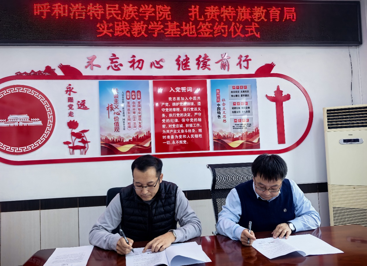 11月24日,我校外國語學院與興安盟扎賚特旗教育局在扎賚特旗共同舉行“實踐教學基地”簽約揭牌儀式。外國語學院院長秦紅喜、黨政辦公室主任胡日查畢力格,扎賚特旗教育局副局長孫勝利、朱滿達及雙方相關(guān)負責人出席活動。