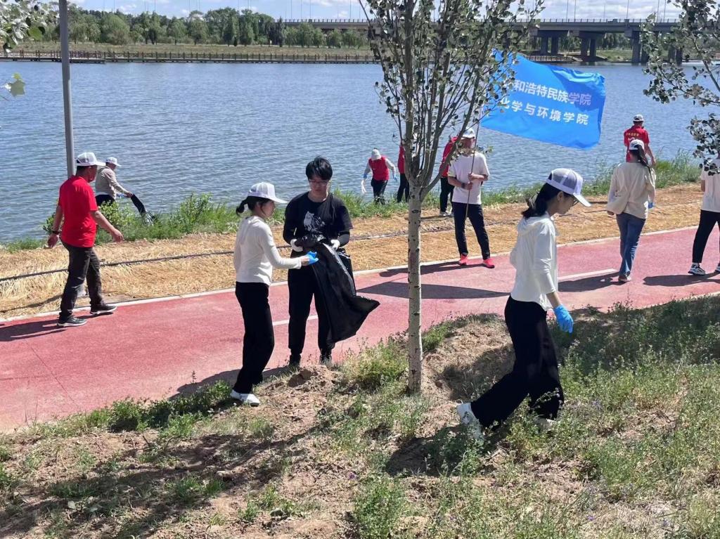 為貫徹落實黨的二十大精神和習近平生態文明思想,響應中國環境科學學會“大學生在行動”的號召,6月11日,化學與環境學院環保科普志愿服務隊指導教師與學生代表前往大黑河郊野公園,參加了由呼和浩特市生態環境局、呼和浩特市環境科學學會、內蒙古蒙牛乳業(集團)股份有限公司主辦的“百人凈灘”環保公益活動。