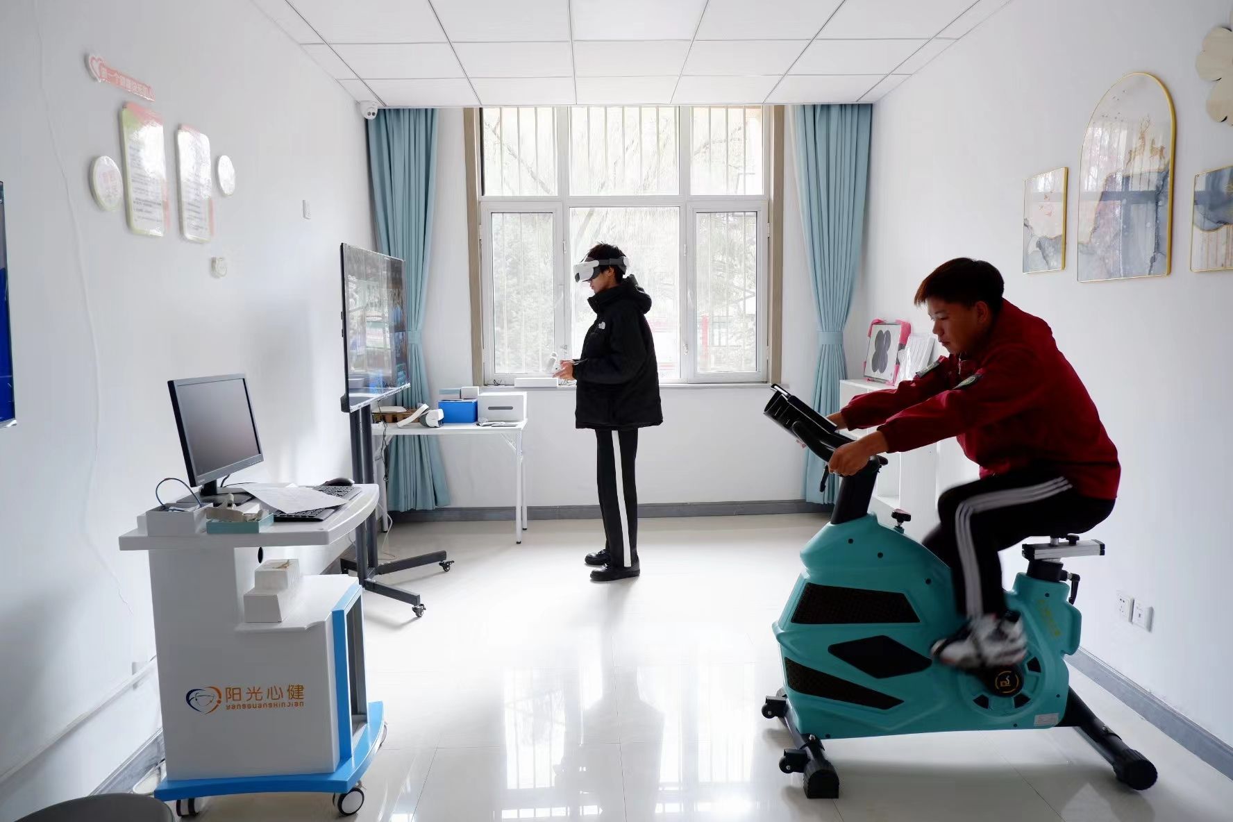 為貫徹落實《全面加強和改進新時代學生心理健康工作專項行動計劃(2023-2025)》,不斷提升我校大學生心理健康教育質量,學校投入建設經費,加大對學生社區心理健康教育工作站的物理空間和育人環境的打造,就近滿足學生各項需求。我校心理咨詢與服務中心位于2號學生公寓一樓,包括“心靈驛站”圖書室、預約接待室、個體心理咨詢室、身心調適運動訓練室、音樂放松室、VR體驗室、心理沙盤室、心理宣泄室、心理測評室、團體輔導室等,共有13個工作室,占地面積500平方米。
