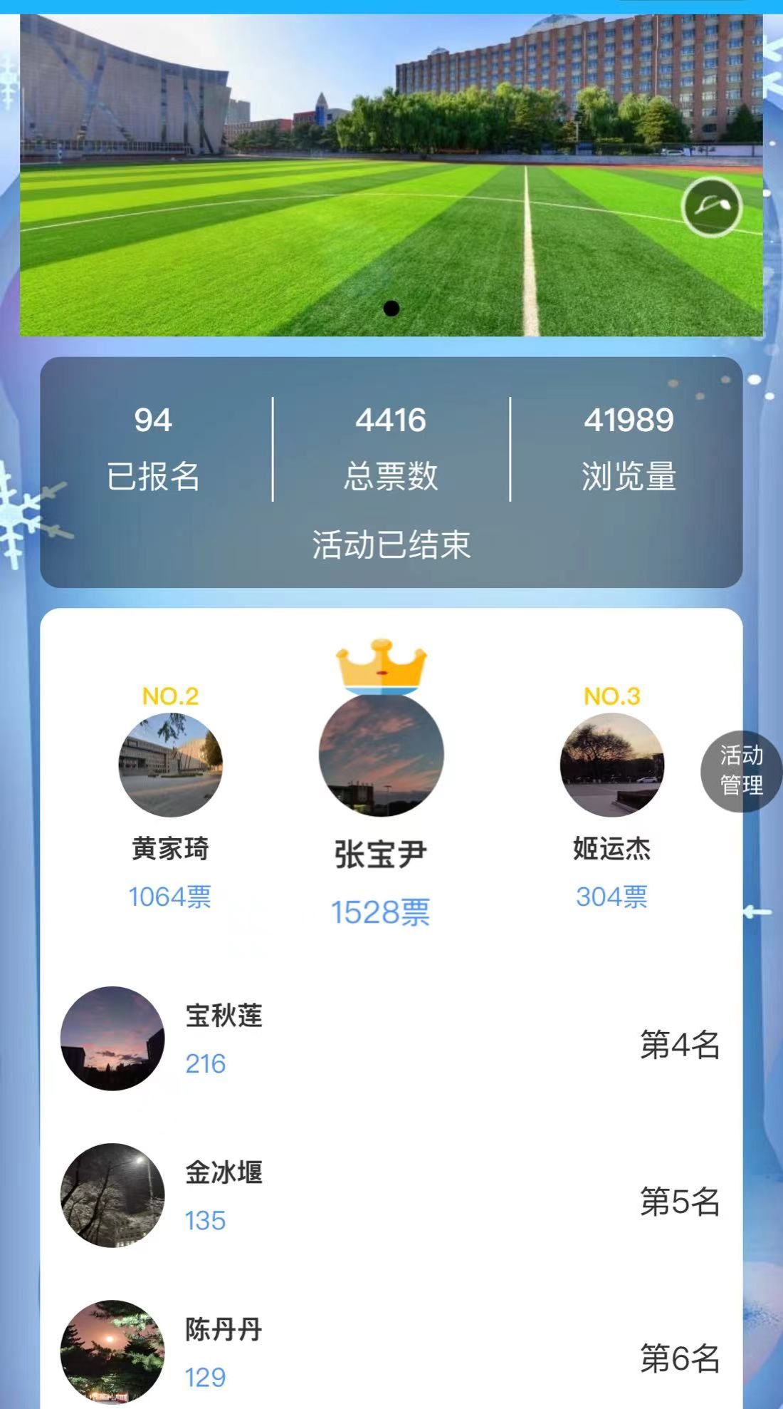本次活動(dòng)通過(guò)參賽學(xué)生報(bào)名投稿攝影作品、通過(guò)網(wǎng)絡(luò)投票作品等環(huán)節(jié),最終張寶尹同學(xué)榮獲一等獎(jiǎng),黃家琦、姬運(yùn)杰兩名同學(xué)榮獲二等獎(jiǎng),寶秋蓮、金冰堰、陳丹丹三名同學(xué)榮獲三等獎(jiǎng)。