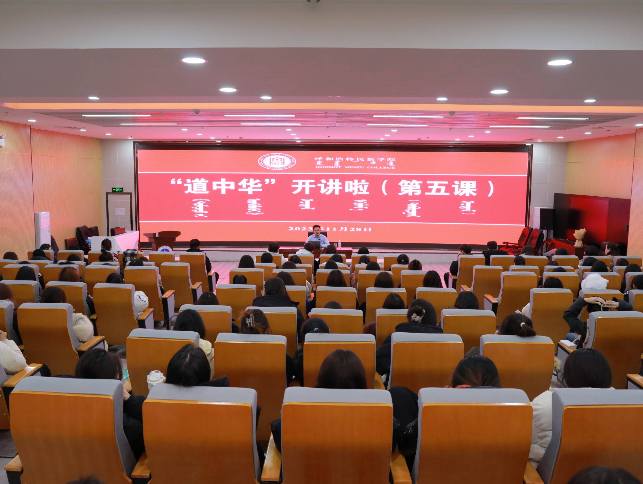 為進一步引導師生感悟中華優秀傳統文化魅力,將中華民族共同體意識深深根植于師生心靈深處,不斷增強四個自信,我校于11月28日舉辦了“道中華開講啦!”主題講座第五課。宣傳部負責人張海峰進行了專題宣講。學前教育學院近150名師生參加活動。