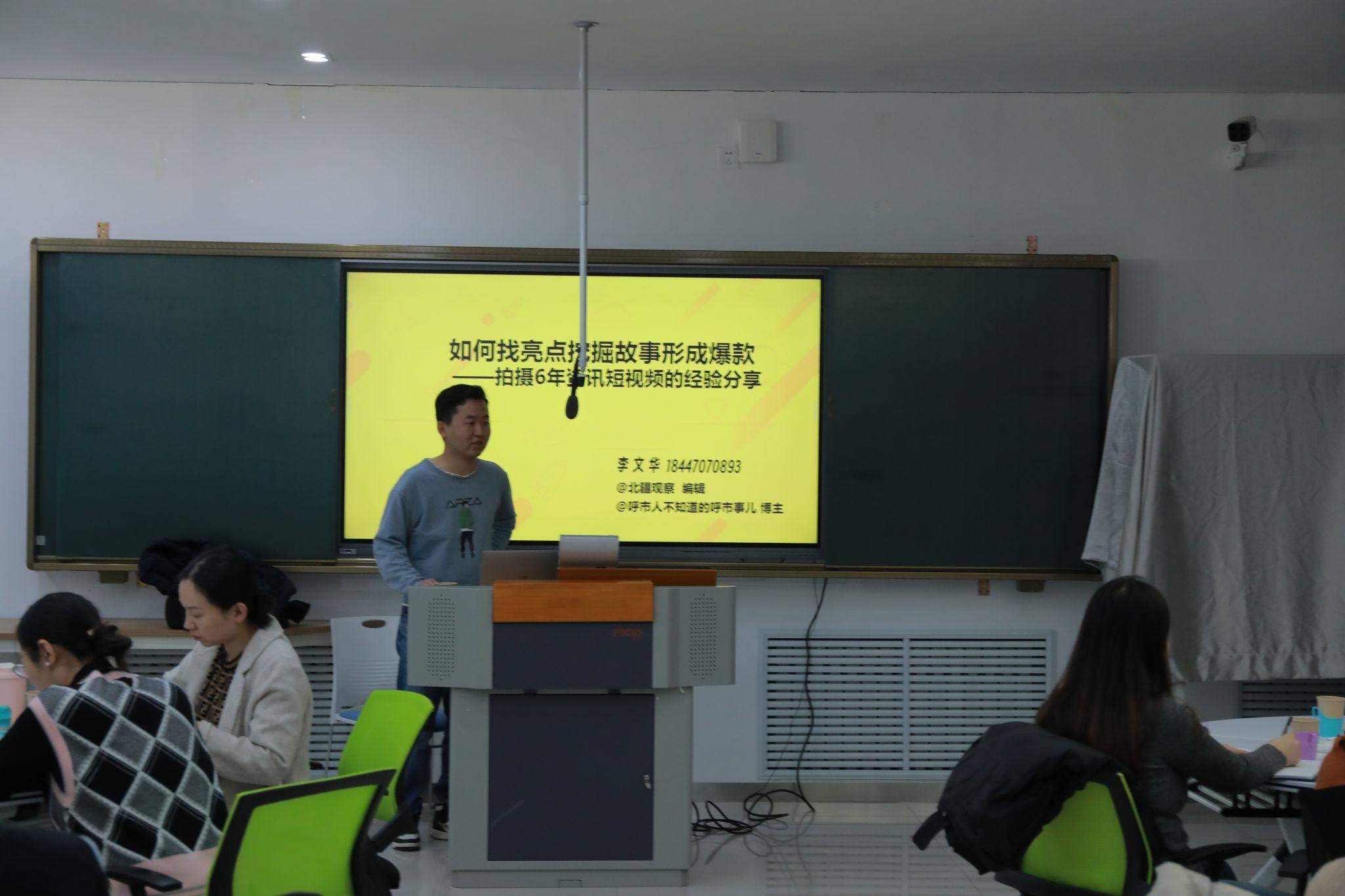 李文華結(jié)合自己多年從事新聞宣傳工作的經(jīng)驗(yàn),以拍攝資訊短視頻的技巧為切入點(diǎn),以“如何找亮點(diǎn)挖掘故事形成爆款”為題,從短視頻的靈感來源、內(nèi)容選題、撰寫標(biāo)題等方面進(jìn)行了精彩的分享,詳細(xì)講解了如何將傳統(tǒng)新聞拆解、融入新媒體技術(shù),更符合當(dāng)今時(shí)代所要求的傳播規(guī)律,以擴(kuò)大新聞報(bào)道的影響力。李文華還與通訊員面對(duì)面溝通交流,進(jìn)行經(jīng)驗(yàn)分享和答疑解惑。