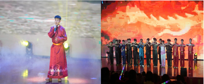 晚會在激昂的馬頭琴曲中拉開帷幕,節(jié)目內(nèi)容豐富多樣,涵蓋群舞、獨舞、獨唱、三重唱、葫蘆絲獨奏、舞獅表演、詩朗誦、情景劇、武術(shù)表演、拉丁舞、健身操、合唱等多種形式。