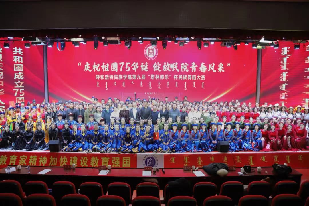 11月27日,由校團委主辦的“慶祝祖國75華誕 綻放民院青春風采”呼和浩特民族學院第九屆“塔林都樂”杯民族舞蹈大賽在北院圖書館二樓報告廳開賽。大賽邀請了校內外專業評委,校團委全體教師、各二級學院黨、團總支書記、輔導員和學生共700余人觀看了大賽。
