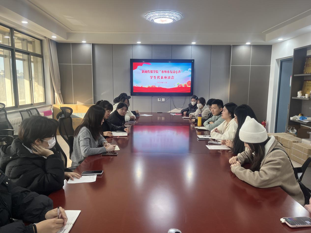 11月29日,為了解學生的學習和生活情況,聽取學生對學院教學、管理等方面的意見和建議,新聞傳媒學院在都林樓519會議室召開了“亦師亦友議心聲”學生代表座談會。學院黨總支書記蘇倫高娃主持會議,黨總支副書記王麗及來自新聞學、播音與主持藝術、網絡與新媒體的學生代表參加了本次座談會。