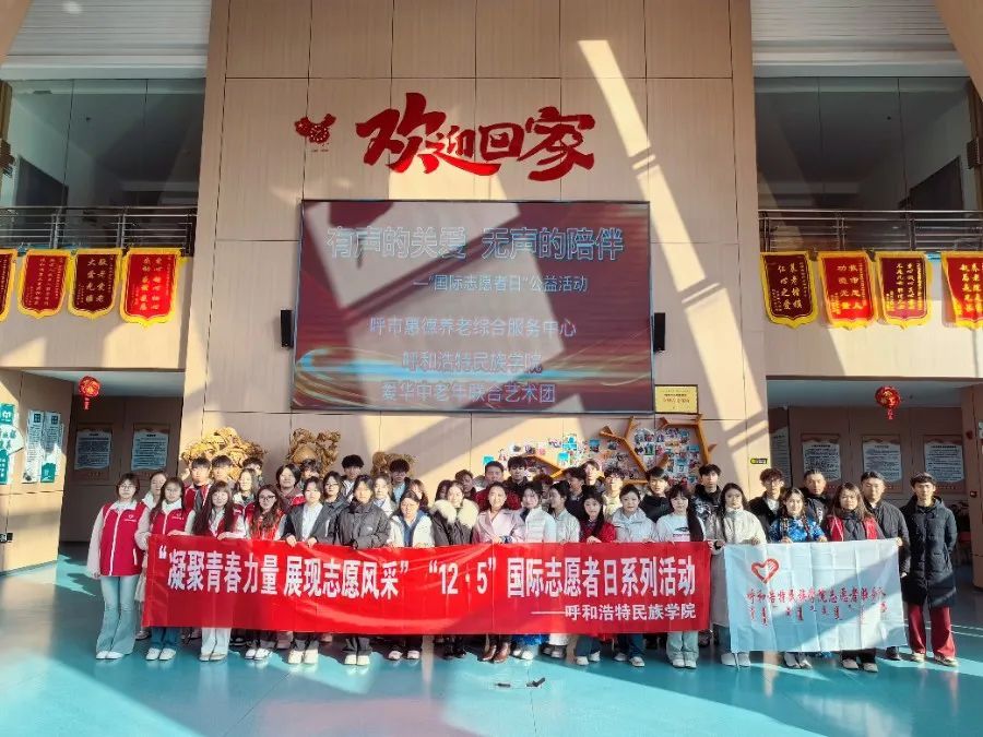 為紀念第39屆“國際志愿者日”, 12月5日,我校志愿服務隊與愛華中老年聯合藝術團在呼市惠德養老綜合服務中心共同開展了“有聲的關愛 無聲的陪伴”公益活動。