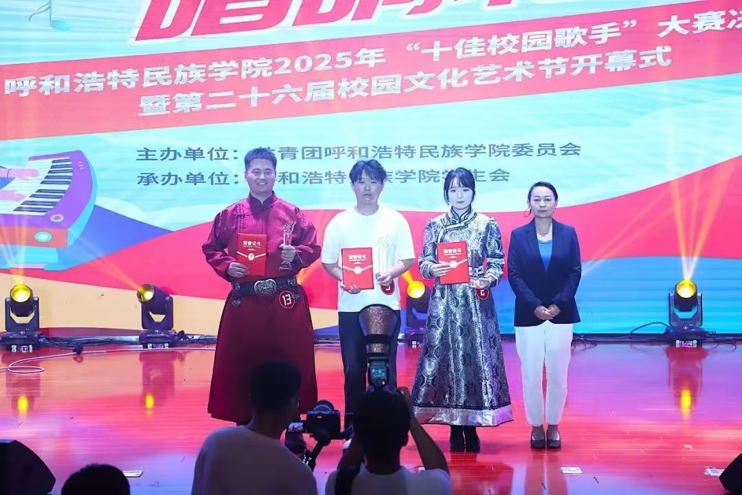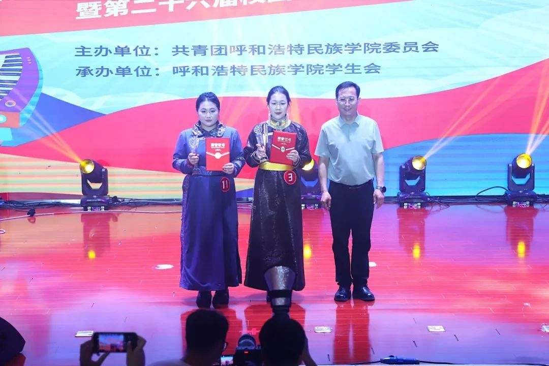 經過評委專業打分與現場氛圍綜合考量,音樂與舞蹈學院海木日獲得專業組一等獎;薩日乃獲得專業組二等獎;紅霞獲得專業組三等獎;白彩云、包薩其日胡獲得專業組優秀獎。馬克思主義學院郭烏云塔娜獲得非專業組一等獎;管理學院康佳鑫、文學院南丁獲得非專業組二等獎;新聞傳媒學院包楷木、管理學院王鶴然、蒙古學學院柴拉干獲得非專業組三等獎;計算機與信息技術學院張曉婧、商學院苗書銳等8名同學獲得非專業組優秀獎。新聞傳媒學院包楷木獲得“最佳臺風獎”;馬克思主義學院郭烏云塔娜獲得“最具網絡人氣獎”;新聞傳媒學院、管理學院、計算機與信息技術學院獲得“優秀組織獎”。