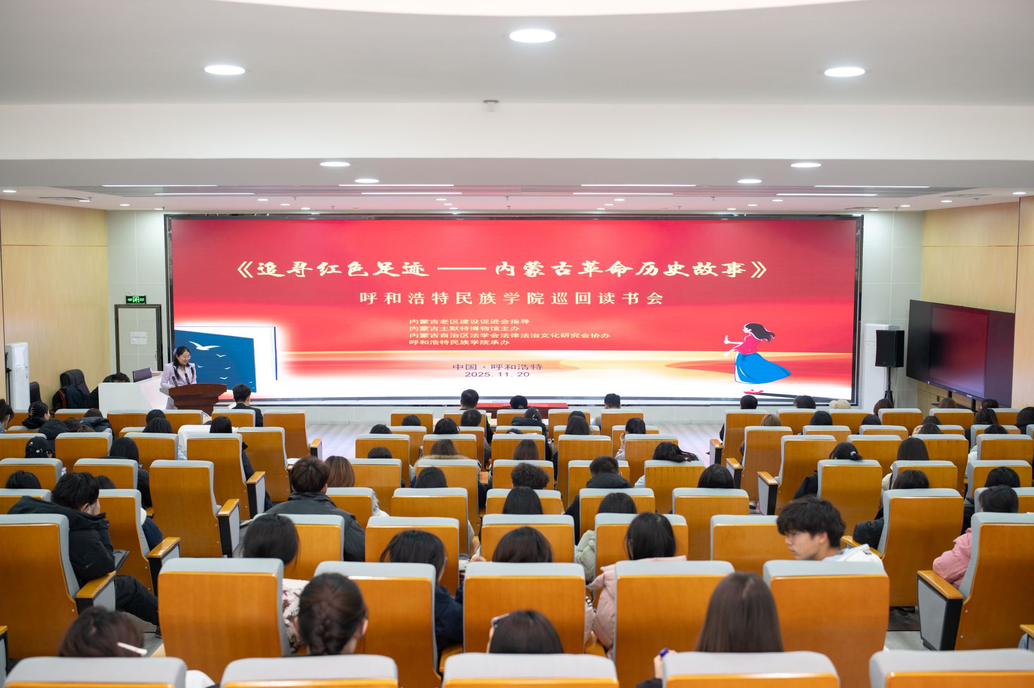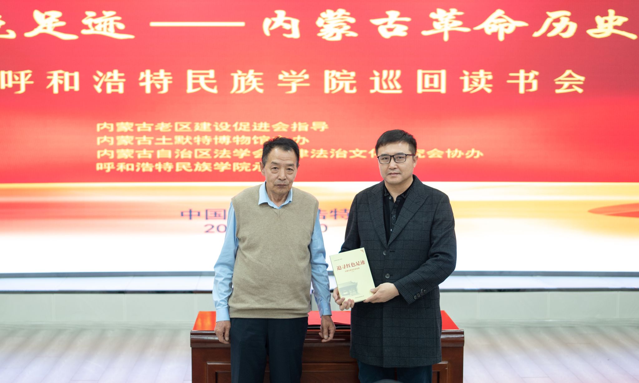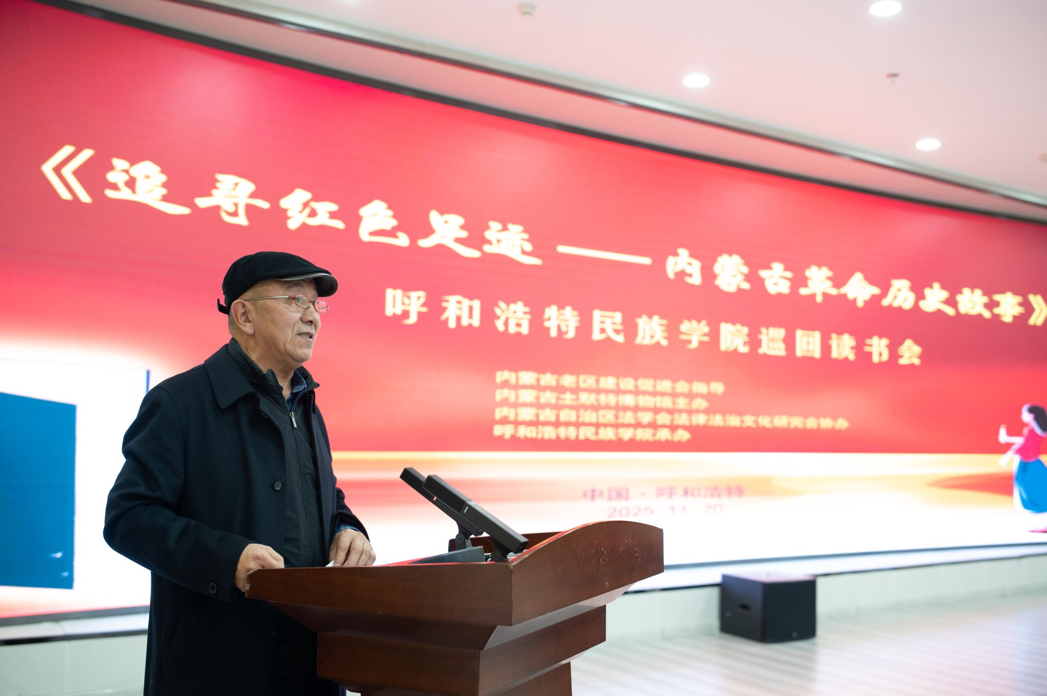 11月20日下午,“追尋紅色足跡:內蒙古革命歷史故事”巡回讀書會在學校鑄牢中華民族共同體意識教育館一樓報告廳拉開帷幕。內蒙古自治區法學會法律法治文化研究會會長武夜平,內蒙古土默特博物館法律顧問高潤平,校黨委委員、宣傳部部長張海峰以及全校200余名師生齊聚現場,以圖書捐贈、故事分享、座談交流等形式,重溫內蒙古革命歲月里的熱血與信仰,讓紅色基因在青年群體中持續激蕩。本次活動由文學院王佳老師主持。
