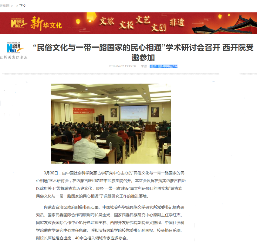 3月30日,“民俗文化與一帶一路國(guó)家的民心相通”學(xué)術(shù)研討會(huì)在我校召開。經(jīng)宣傳部積極與媒體取得聯(lián)系,人民網(wǎng)、中國(guó)新聞網(wǎng)、新華網(wǎng)、《民族畫報(bào)》、中國(guó)社會(huì)科學(xué)網(wǎng)、內(nèi)蒙古蒙古語(yǔ)衛(wèi)視、內(nèi)蒙古旅游報(bào)微信公眾號(hào)等媒體進(jìn)行了報(bào)道,取得了社會(huì)各界的廣泛好評(píng)和關(guān)注。