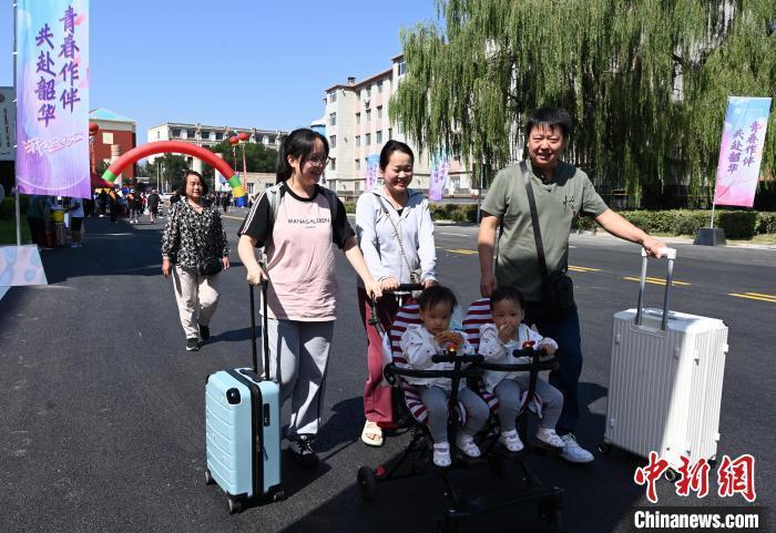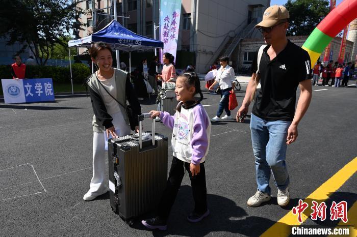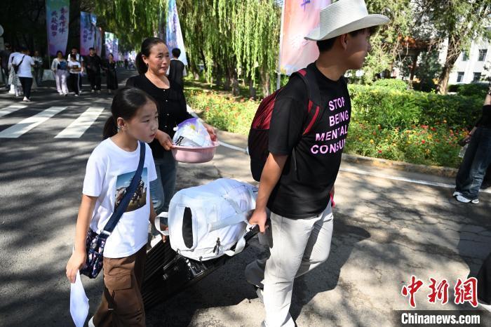 8月30日,內蒙古呼和浩特市,全家陪同大學生入校報到。中新社記者 劉文華 攝